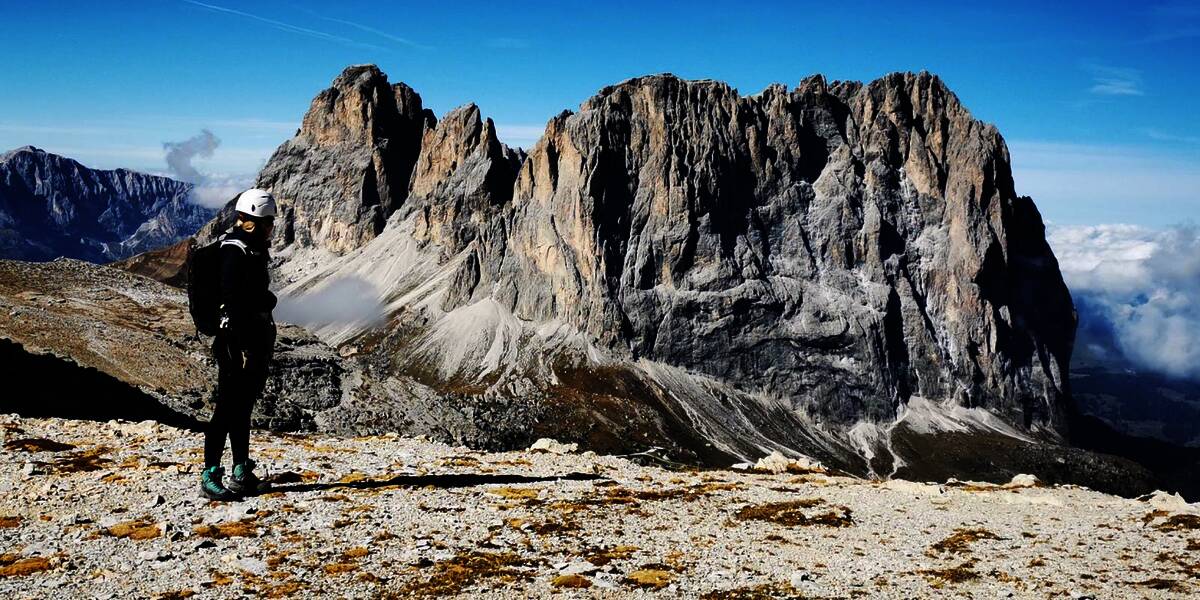 Anspruchsvolle Via Ferrata mit grandiosem Panorama auf Langkofelgruppe, Marmolada und die Sellagruppe